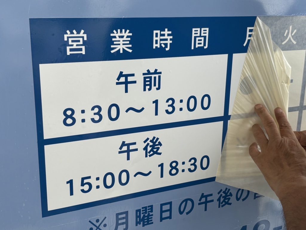 - 内容:店舗入り口の看板シート張り替え
