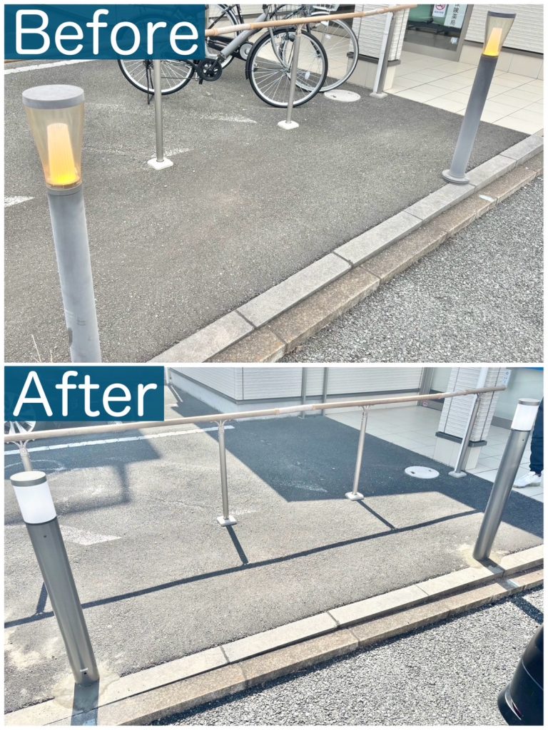 こちらの店舗前のローポールライトの交換工事のご依頼を承りました✨