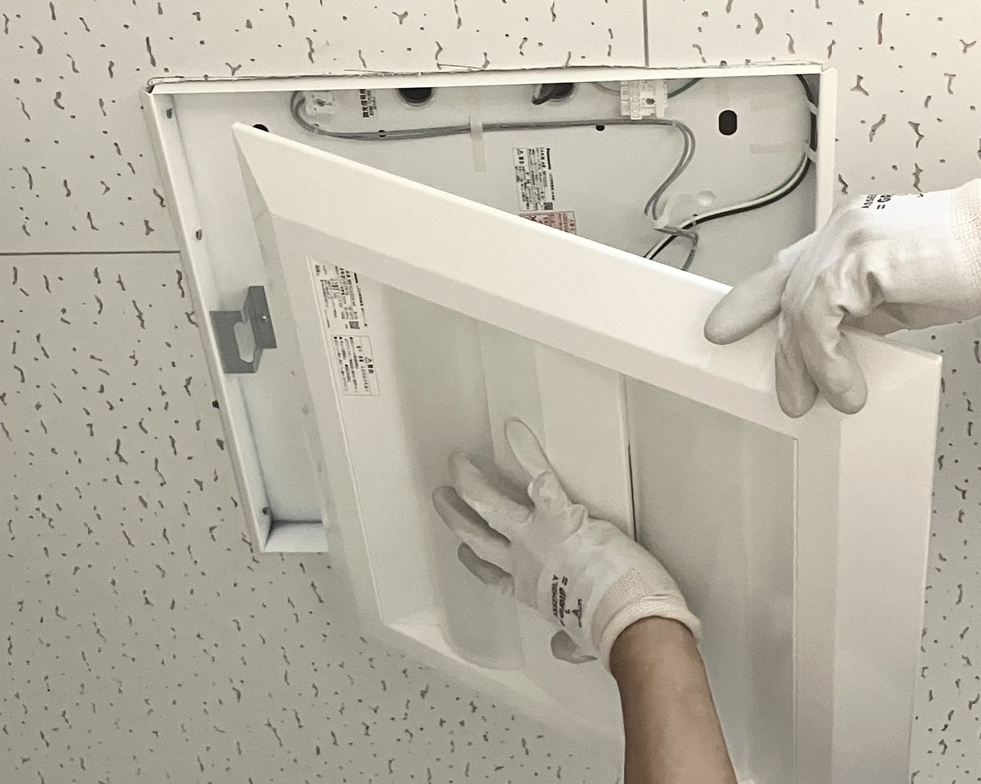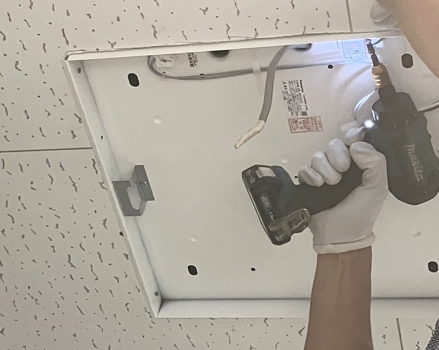 ②より大きいサイズの新しい照明を取り付けるため、開口作業を行う