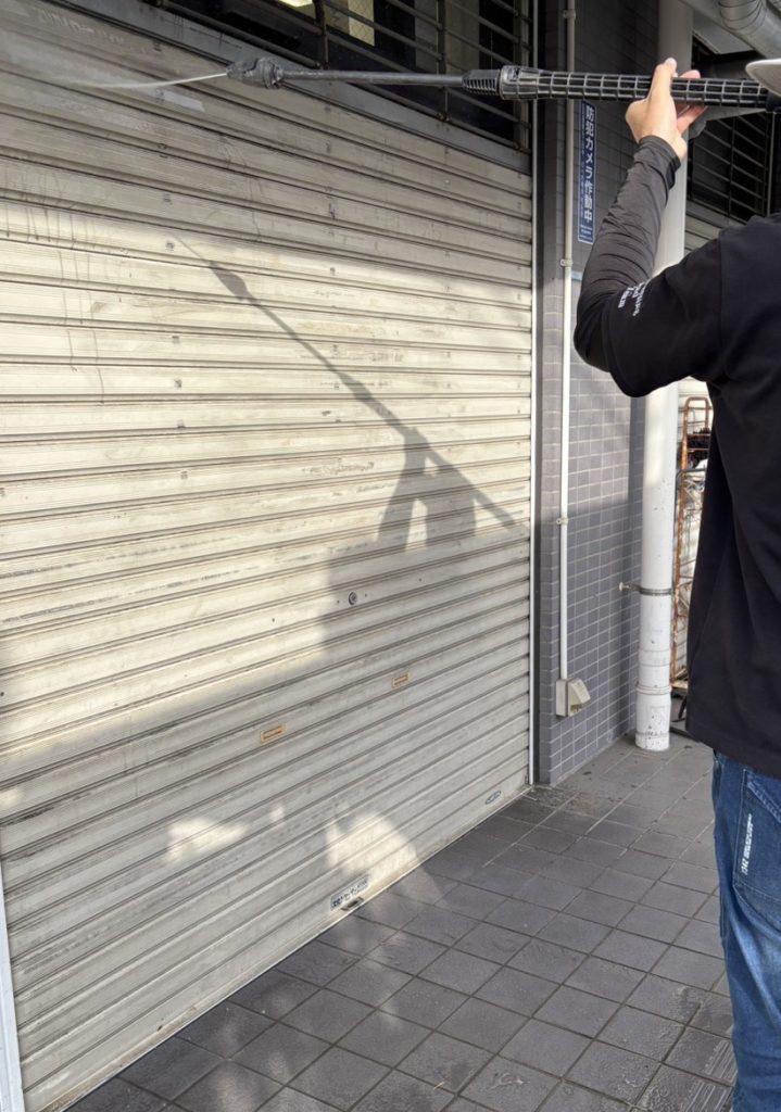 まずは、シャッター全体をムラなく均一に洗い上げます。