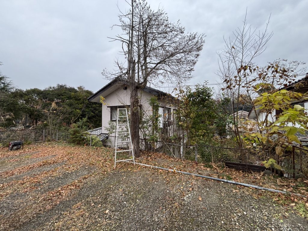 大きな木が茂っていて、フェンスも老朽化している状態です。