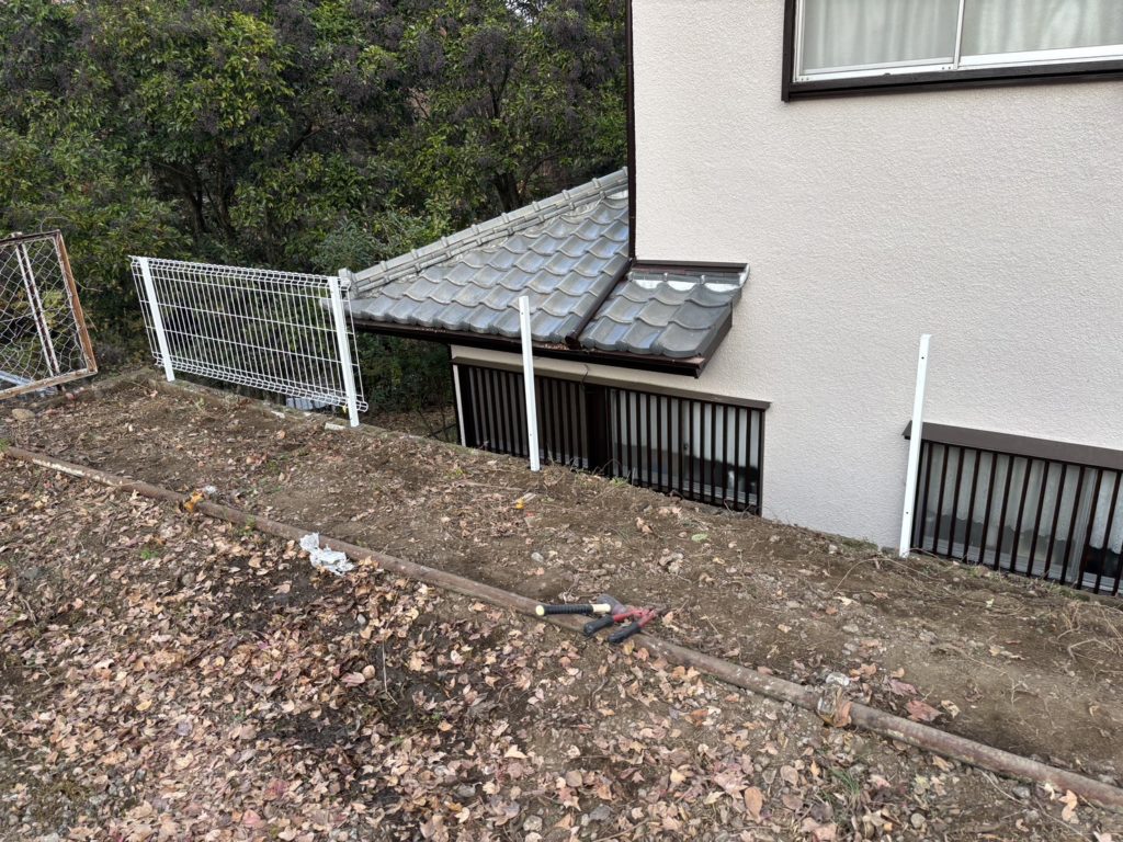 抜根&フェンス撤去→整地→新しいフェンス設置